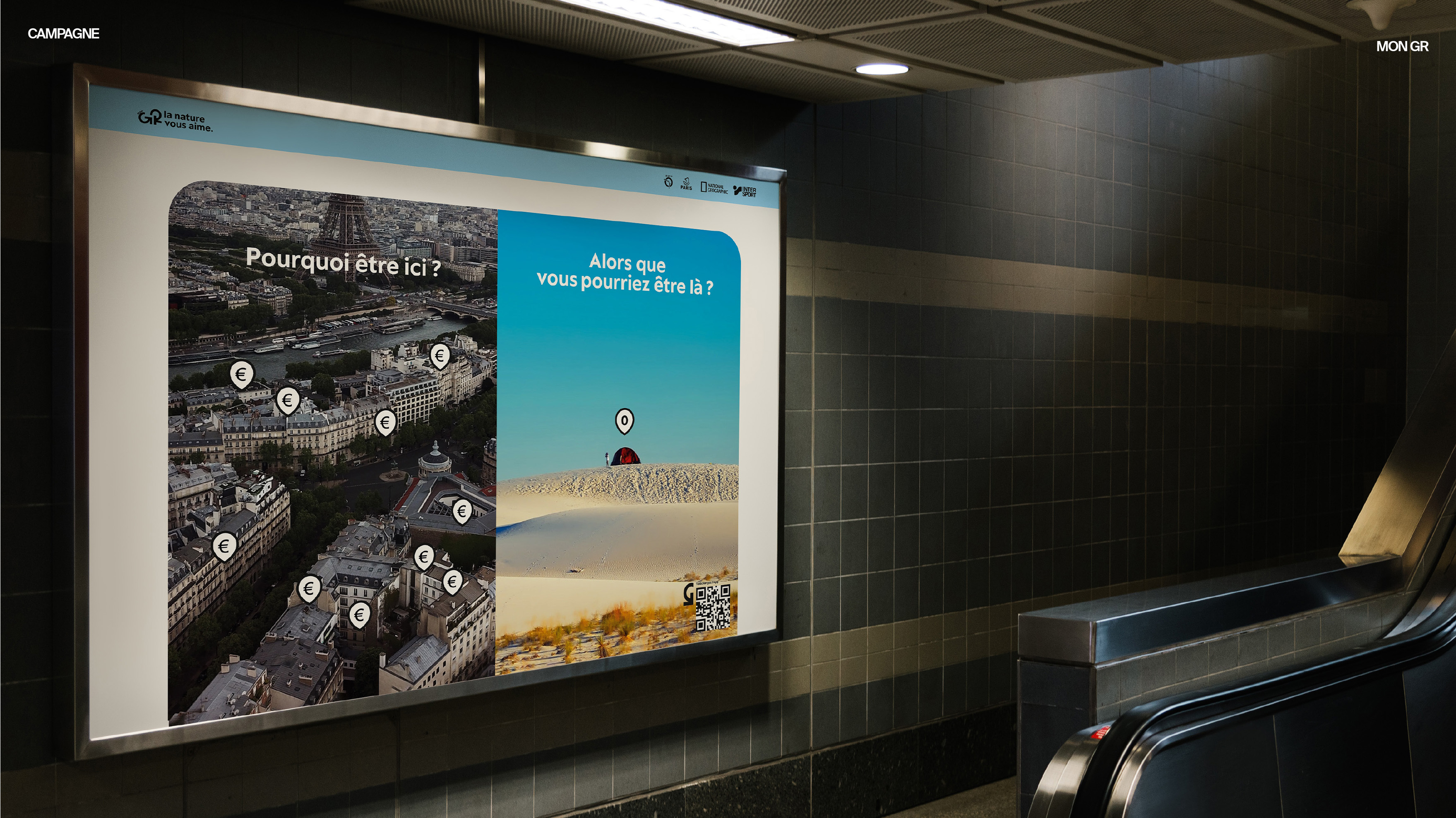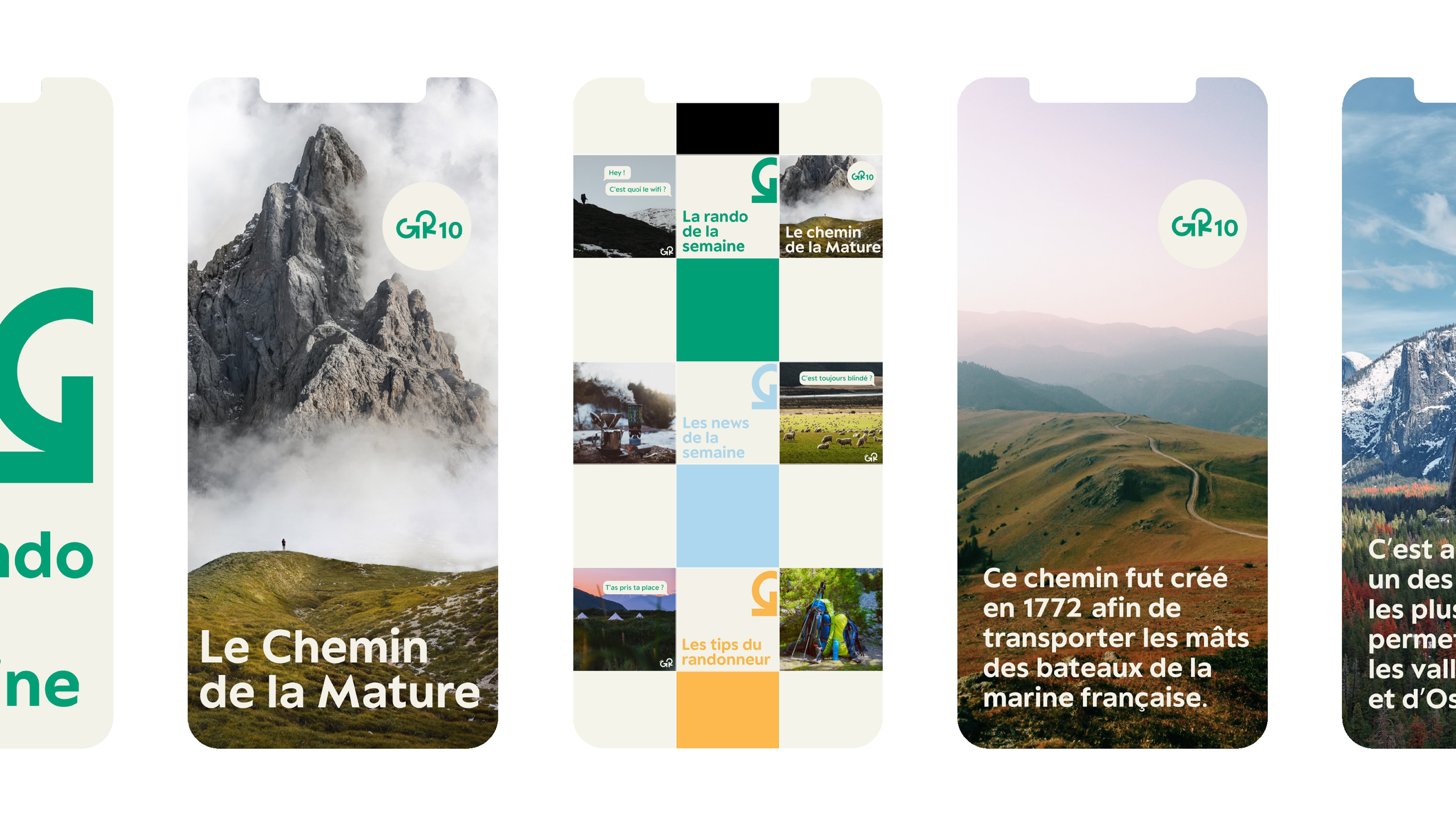 As part of this fictional rebranding project for Mon GR, the focus here is on repositioning walking and the GR® long-distance trails. Long perceived as a generational activity, hiking would be rejuvenated through the influence of social media and a renewed interest in nature. In this fictional scenario, successive lockdowns would also have contributed to rediscovering the simple pleasure of walking outdoors.